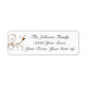 Show your style with these elegant script black and brown return address labels. This design features a white background with black script and a brown floral flourish. Add your information to complete the look.