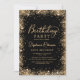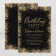 Elegant Modern Black and Gold glitter 90th birthday party invitations. This adult girly card design features stylish handwritten calligraphy script in gold on black background. With loose glam faux gold glitter border around. Easy to personalize, perfect for any age.