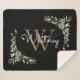 Elegant Script Black Gold Monogram Greenery Sherpa Blanket