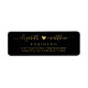 Elegant, Modern Black and Gold Hand Lettered Wedding Return Address Labels. Featuring a pretty hand-written script bride and groom's first name template with swash-tail font in black, little heart shape between the names on white colour background. Easy to personalise them with your names and return address info.
