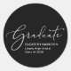 An elegant black sticker for your graduation announcements, invitations, thank you cards and party favours with "Graduate" in a chic white script and the grad's name, class year and school in simple modern white typography.