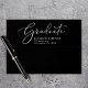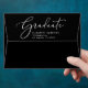 An elegant black envelope for your graduation announcements, invitations and thank you cards with "Graduate" in a chic white script and the grad's name and return address in simple modern white typography.