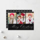 Elegant Script Black Merry Christmas 3 Photo Holiday Card