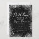 Elegant Script Black Silver Glitter 10th Birthday Invitation