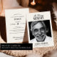 Honor a life well-lived with this elegant, double-sided memorial card featuring a black-and-white portrait framed in classic serif type. The front design includes a striking “In Loving Memory” header with space to customize the name and dates of your loved one. The back layout is thoughtfully arranged to provide full funeral or celebration of life event details, including date, time, venue, and RSVP information. A timeless cream background and minimalist typography give this design a refined, understated style suitable for formal memorial services. With its vintage-inspired layout and monochrome palette, this card complements a wide range of service themes. Whether mailed to loved ones or sent digitally, it serves as a beautiful keepsake for family and friends to cherish. Available as printed cards or an instant digital download.