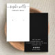 Elegant script font with swashes. QR code on backside Stylish black and white earring display holder with two printed hole "markers" - these are not real holes.