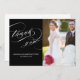 Custom Elegant Formal Script Black and White Wedding Photo Thank You Card. Elke Clarke© Personalise this template with your own wedding photo and bride and groom names and wedding date.