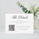 Provide your guests with all of your important wedding RSVP details and QR code with this elegant black and white design featuring elegant script typography. Perfect for a black tie or semi-formal wedding. If you need a custom order, please contact me.