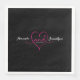 These wonderful elegant party napkins are perfect for weddings, bridal showers, baby showers, birthdays, baptisms, graduations, and more. They offer a minimalist classy design with elegant script and a romantic pink heart on a classy black background. Three lines of white coloured text are included but more can be added in the design tool. Personalise them for your event and create a complete look with other coordinating items from our shop. Please reach out if you need assistance or if you need any other products.