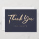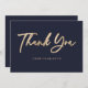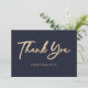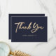 Express your gratitude with this minimalist, yet elegant blue and gold thank you card featuring a modern faux gold foil script font on the front and custom text at the back.