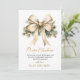 Modern Elegant Calligraphy Script Botanical Bow Merry Christmas Non Photo Holiday Cards. These minimalist Christmas cards feature a beautiful watercolor design of botanical greenery with pine branches, accented by an elegant gold bow. The 'Merry Christmas' greeting is written in stunning hand-lettered gold calligraphy against a clean white background. The reverse side showcases a golden bow pattern on a soft dusty green backdrop. Perfect for adding a personal touch, these custom Christmas cards are a thoughtful way to share warm wishes with loved ones this holiday season.