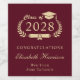 Elegant burgundy red graduation party wine labels featuring "Class of" in a light gold illustration of laurel wreath incorporating a grad cap and diploma, the graduate's name in a stylish gold script, and "Congratulations" and their school name in modern gold typography.