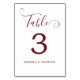 Elegant Script Burgundy Wedding Table Number Card
