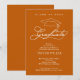 A graduation cap and the word "graduate" in an elegant white script PLUS the name and year of your graduate and your information on these burnt orange graduation party invitations. SEE ENTIRE COLLECTION of pre-done colours, paper plates, napkins, grad cap tops and more in our store.