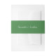 This wedding invitation belly band features the names of the bride and groom in elegant handwritten calligraphy text. The background is green and can be changed to any colour by choosing customise.