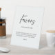 Complete your gift station with this modern and stylish favours wedding sign. The elegant black handwritten script and classic lettering on a white background is perfect for formal weddings. You can also change the colours of the text and background to match your theme. Make your wedding favours stand out with this beautiful sign. Order yours today and add a touch of sophistication to your special day!