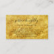 Elegant Script Calligraphy Swash Black Gold Texture Business Card. Elegant, stylish professional business card with fancy calligraphy script name with swashes in black on a gold texture background). CHANGES: Change the text font style, colour, size and placement in EDIT. ASSISTANCE: For help with design modification, transferring the design to another product or if you would like coordinating items, contact the designer BEFORE ORDERING via the Zazzle Chat MESSAGE tab or email makeitaboutyoustore@gmail.com.