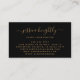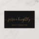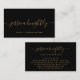 Elegant Script Calligraphy Swash Minimalist Black Gold Business Card. Modern, stylish professional business card with fancy calligraphy script name with swashes in your choice of colours (shown in gold on black). CHANGES: Change the text font style, colour, size and placement and/or the background colours in EDIT. ASSISTANCE: For help with design modification, transferring the design to another product or if you would like coordinating items, contact the designer BEFORE ORDERING via the Zazzle Chat MESSAGE tab or email makeitaboutyoustore@gmail.com.