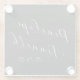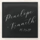 Add a touch of timeless elegance to your wedding decor with this beautiful glass coaster featuring sophisticated script calligraphy. The sleek black background contrasts perfectly with the crisp white typography, creating a modern and chic aesthetic. This stylish design is perfect for weddings and special events, adding both functionality and a personal touch to your celebration. A stunning keepsake for guests to remember your special day!