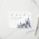 This formal wedding RSVP card features a vintage illustration of a castle, which you can replace with an image of your wedding venue (transparent or white background preferred). Elegant dark blue lettering lays out the title, whether the guest will accept or decline, and the date to respond by. There's also a line for you to hand-write the guest's ID number (which is helpful when keeping track of many RSVPs).