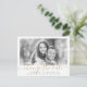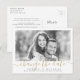 Modern script "change the date" in gold colour, with couple's photo, simple and elegant. inform your wedding guests the updated information with this photo announcement.