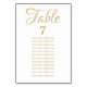 Elegant script custom gold text Wedding Table Number, Guest Seating Chart Card.