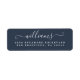 Chic, modern and simple family name return address label with your last name in white elegant handwritten script calligraphy on a dark blue background. Simply add your name and address. Exclusively designed for you by Happy Dolphin Studio. If you need any help or matching products please contact us through our store chat!
