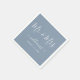 Elegant personalised dusty blue Mr. and Mrs. wedding paper napkins with a modern script font. Easily personalise online. Matching items available to complement these modern dusty blue wedding paper napkins.