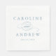 A classic wedding napkin featuring the couples names and elegant calligraphy script and with event date.