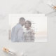 This elegant script faded horizontal photo wedding invitation is perfect for a simple wedding. The minimalist black and white design features fancy romantic typography with modern glam style. Personalise it with 2 engagement photos, one on the front and one on the back.