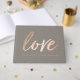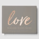 This elegant and simple guest book features a faux foil script font in a pretty grey and rose gold colour palette. Personalise with names, wedding date and a photo on the back.