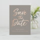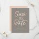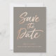 This elegant and simple save the date features a faux foil script font in a pretty grey and rose gold colour palette.