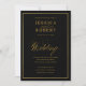 Elegant Script Faux Gold Border Black Wedding Invitation