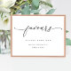 Elegant "Favours" sign with beautiful modern handwritten calligraphy details. 10" x 8" is only our default size, this sign is available in a variety of sizes. Easy to frame or alternatively glue/staple into inexpensive MDF. The same design with the American English spelling "favours" is also available. This design is part of our "Modern Elegant Wedding and Events Signage" collection with a variety of coordinating signs available.