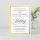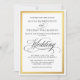 A beautifully elegant wedding invitation featuring calligraphy script text accents with a wide gold border surrounding your text. The simple, tasteful style works well for weddings in all seasons.