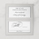 This simple and elegant folding place card is highlighted with a lovely calligraphy font style and surrounded by a border of silvery-grey with a thin black line. Write in your table number and guest names for each card.