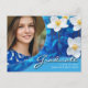 Elegant Script Flowers Blue | Modern Photo Grad Postcard