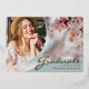 A unique photo graduation announcement card, featuring design elements of elegant handwritten style script with the word "Graduate" in real foil (foil colour options are gold, silver and rose). The graduates photo is enhanced by a beautiful bloom of white, pink and red flowers on a dusty teal base colour. The back of the card offers personalised text spaces for information about the graduation and future journey. To see more items like this, visit my store here at "www.Zazzle.com/LakeViewCardCo". Thanks