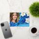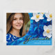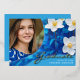 A unique photo graduation announcement card, featuring design elements of elegant handwritten style script with the word "Graduate" in real foil (foil colour options are gold, silver and rose). The graduates photo is enhanced by white and yellow flowers on a blue background. The back of the card offers personalised text spaces for information about the graduation and future journey. To see more items like this, visit my store here at "www.Zazzle.com/LakeViewCardCo". Thanks