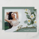 A unique photo graduation announcement card, featuring design elements of elegant handwritten style script with the word "Graduate" in real foil (foil colour options are gold, silver and rose). The graduates photo is enhanced by beautiful white and yellow flowers on a stylish sage green background. The back of the card offers personalised text spaces for information about the graduation and future journey. To see more items like this, visit my store here at "www.Zazzle.com/LakeViewCardCo". Thanks