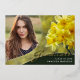 A unique photo graduation announcement card, featuring design elements of elegant handwritten style script with the word "Graduate" in real foil (foil colour options are gold, silver and rose). The graduates photo is enhanced by beautiful yellow flowers on a forest green background. The back of the card offers personalised text spaces for information about the graduation and future journey. To see more items like this, visit my store here at "www.Zazzle.com/LakeViewCardCo". Thanks