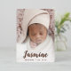Elegant Script Foil Birth Announcement Card featuring your newborn baby photo on the front with details like birth date, weight and lenght and the baby’s name in real foil embellishment. The text in foil finishes is all customisable for your personalisation.