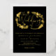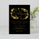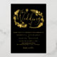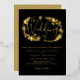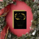 A black and gold foil wedding invitation featuring a delicate hand-drawn rustic floral garland of botanical leaf foliage with stylish script typography. Personalise with your special wedding day information. Designed by Thisisnotme©
