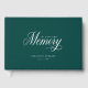 Elegant, Minimalist, Script Font "In Loving Memory" celebration of life, funeral guest book, elegant, lovely handwriting font, green& white.