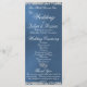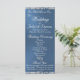 This romantic design features an elegant blue background with glitter borders, wedding ceremony details & thank you on the front with wedding party members on the back. Also available with different coloured backgrounds for your wedding theme colours. (Glitter is simulated in the artwork). Designed to coordinate with the "Two Shall Become One - Hearts, Doves & Glitter" Wedding Collection. To change details, click «Personalise». To move the text or change the text size, font, or colour click «Click to customise further»
