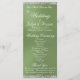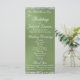 This romantic design features an elegant sage background with glitter borders, wedding ceremony details & thank you on the front with wedding party members on the back. Also available with different coloured backgrounds for your wedding theme colours. (Glitter is simulated in the artwork). Designed to coordinate with the "Two Shall Become One - Hearts, Doves & Glitter" Wedding Collection. To change details, click «Personalise». To move the text or change the text size, font, or colour click «Click to customise further»