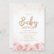 Modern chic "baby shower" script, trendy faux gold glitter and blush pink watercolor floral design, elegant and stylish, great baby shower invitations for baby girl.