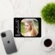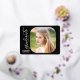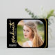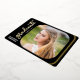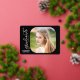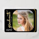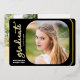 This elegant script graduation party invitation features real gold foil on a black background. The square photo on the front is accented with rounded corners. The backside offers a second vertical photo and custom text for you to add your party invitation details.