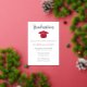 This graduation announcement features a red cap and gold foil lettering. All text on the front and back is editable. Add a photo to the back of the card to create a truly unique graduation invitation.