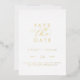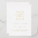 This elegant script gold foil save the date foil invitation is perfect for a simple wedding. The minimalist design features fancy romantic typography in a luxurious pressed gold foil. Customisable in gold, rose gold or silver foil.